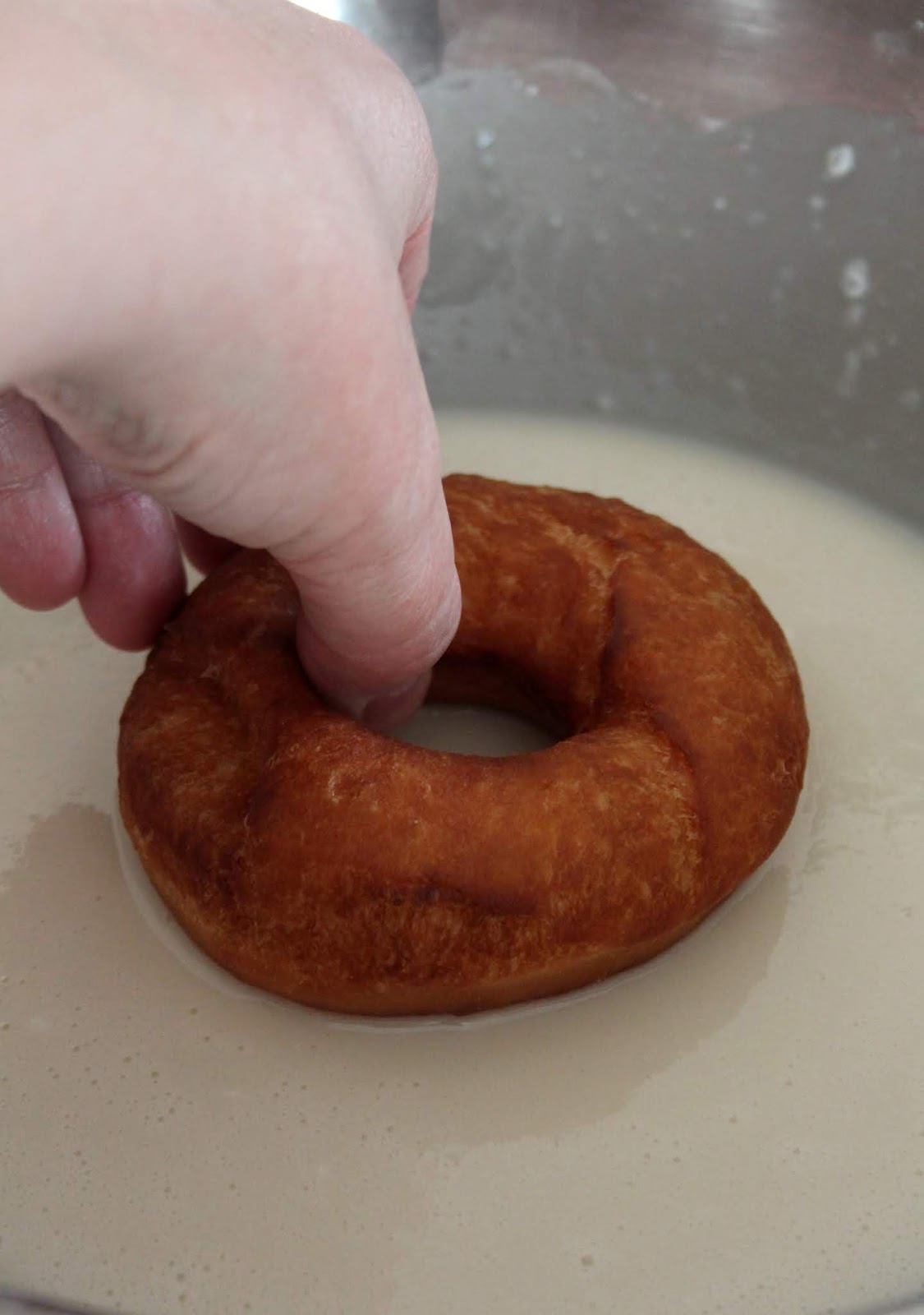 Continue until all donuts are cooked. Let them cool to room temp before applying glaze.